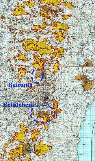 But to get from his home to the store in Beitunia, he has to cross one of the many checkpoints which Israel uses to separate various “Palestinian” areas in the West Bank. (see map). Actually he has to cross it twice – coming and going. Each time is a humiliating, stressful ordeal.