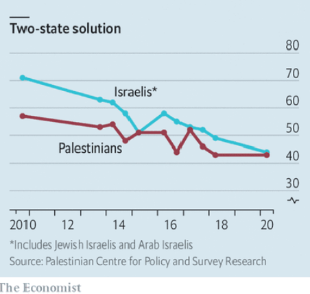 “The Arabs and Jews must decide (…) the world cannot dictate a solution. That will require a new peace process, a genuine one, with legitimacy and popular support on both sides. (…) But to acknowledge reality would be a start. What came before has failed, and what comes next will need to talk less of partition and more of parity.”