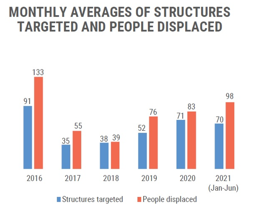 “The number of structures demolished or seized in June is the highest this year (…) a 600 percent increase compared to May”.