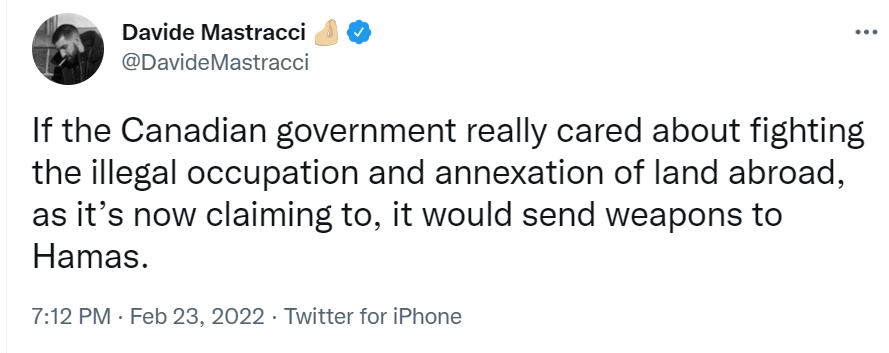 Others openly mocked Trudeau. “If the Canadian government really cared about fighting illegal occupation and annexation of land, as it’s now claiming to, it would send weapons to Hamas” tweeted Davide Mastracci.