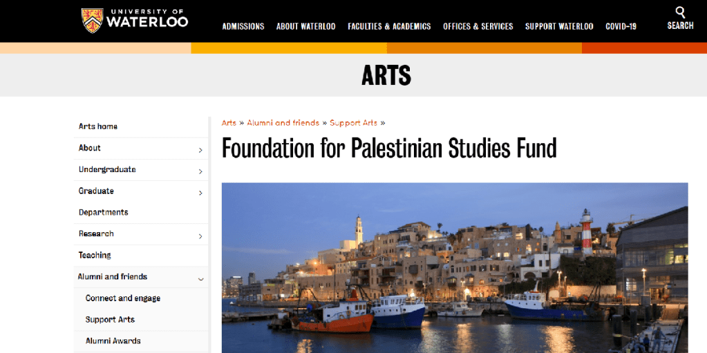 The Palestine Studies Fund was launched by the Faculty of Arts at the University of Waterloo in May 2022. It is Canada’s first educational institute focussed on the study of Palestine.
