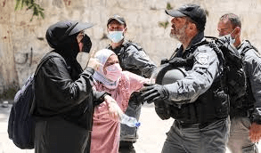 “Israeli forces violently entered Al-Aqsa Mosque, used stun grenades and tear gas, fired sponge-tipped bullets, and indiscriminately beat Muslim worshippers – including elderly people and women – with batons and rifle butts,” according to a statement from the UN Human rights office. “At least 450 Palestinian men were reportedly arrested, and some were kicked and slapped by escorting soldiers as they were led out of the Haram Al-Sharif compound in handcuffs.”