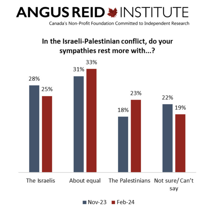 This comes amid a growing view among Canadians that the destruction wrought by Israel’s military response in Gaza after the Hamas terrorist attacks of Oct. 7 has been “too heavy handed.”