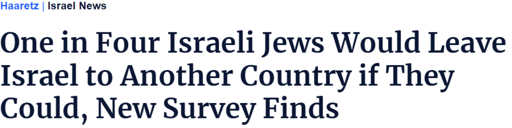 One in four Israeli Jews say they would leave Israel and emigrate to another country if they had the opportunity, according to a recent survey by the Jewish People Policy Institute (JPPI).