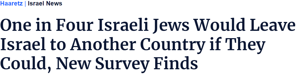 One in four Israeli Jews say they would leave Israel and emigrate to another country if they had the opportunity, according to a recent survey by the Jewish People Policy Institute (JPPI).