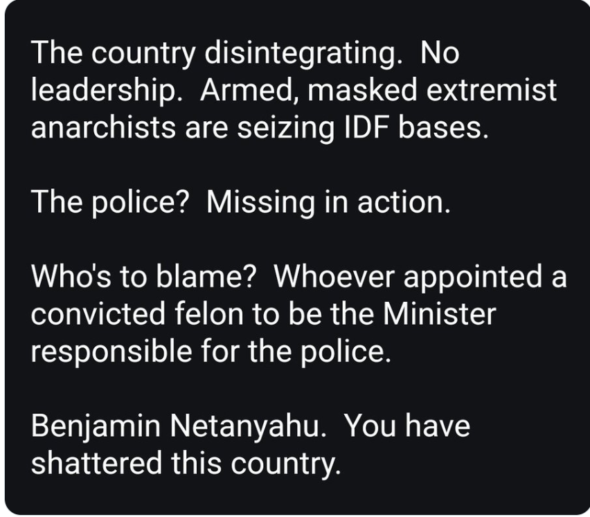 - Signs of disruption “bordering on anarchy” as right wing Israelis fight with IDF soldiers.
