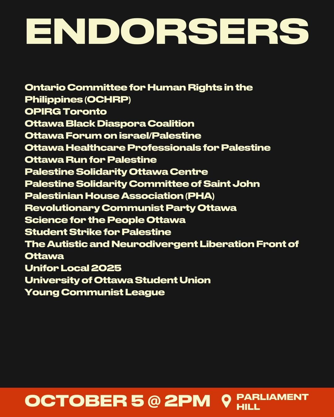 On the International Day of Action Against the Israeli Assault on Gaza, a broad coalition is organizing a demonstration and march in Ottawa on Saturday, October 5th. This will be the second such action following another one organized by Amnesty International last May.