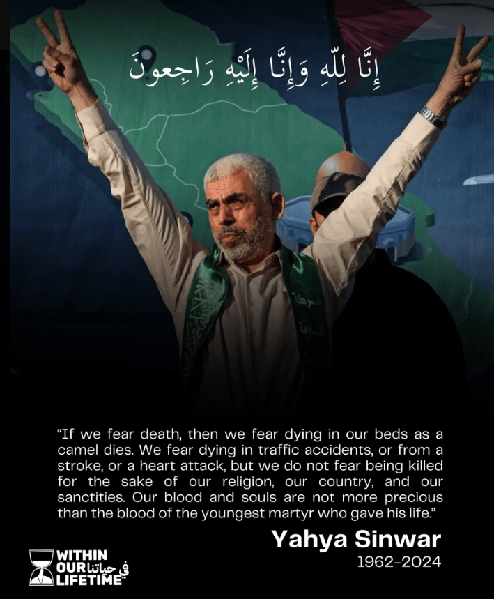 Based on the historical record, it appears unlikely that Sinwar’s death will bring an end to Palestinian resistance. That resistance will only come to an end in one of two ways: