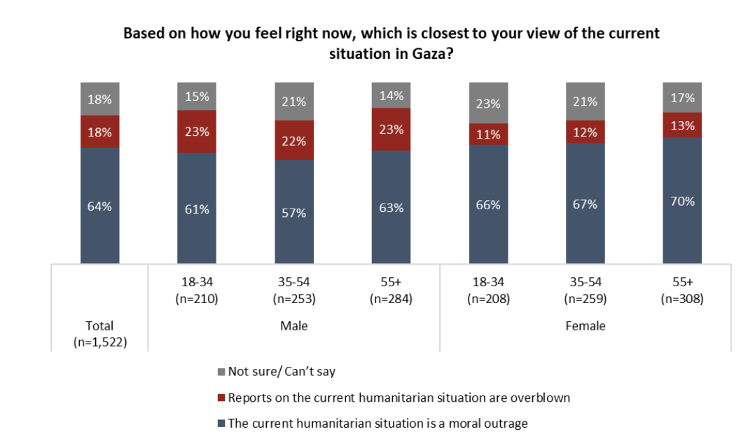 Whether they label it genocide or not, two-thirds of Canadians, including a majority of all demographics, say the current humanitarian situation in Gaza is a “moral outrage”.