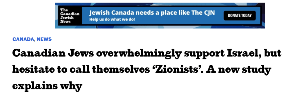 Most Canadian Jews are in the “liberal zionist” camp – supporting the Zionist idea of a Jewish State but willing to allow Palestinians some land for a state of their own. So, how can they say they reject “Zionism” but still support its goals?